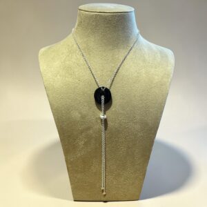 Collier en Y Argent 925/1000 Nacre Blanche et Morta – ÉLÉONORE