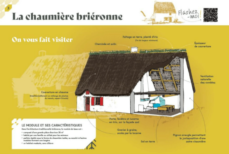 Vedettes du patrimoine de Brière, les chaumières témoignent de l’habitat typique du XVIIe siècle. Les habitants posaient eux-mêmes les brins végétaux : les roseaux (phragmites australis), voire le seigle et le jonc. À ce jour, quelque 2 225 maisons possèdent un toit de chaume. Les artisans chaumiers estiment la durée de vie des couvertures à 30 ans. Elles nécessitent un entretien spécifique manuel pour pallier les dégradations dues aux mousses, lichens et autres champignons.